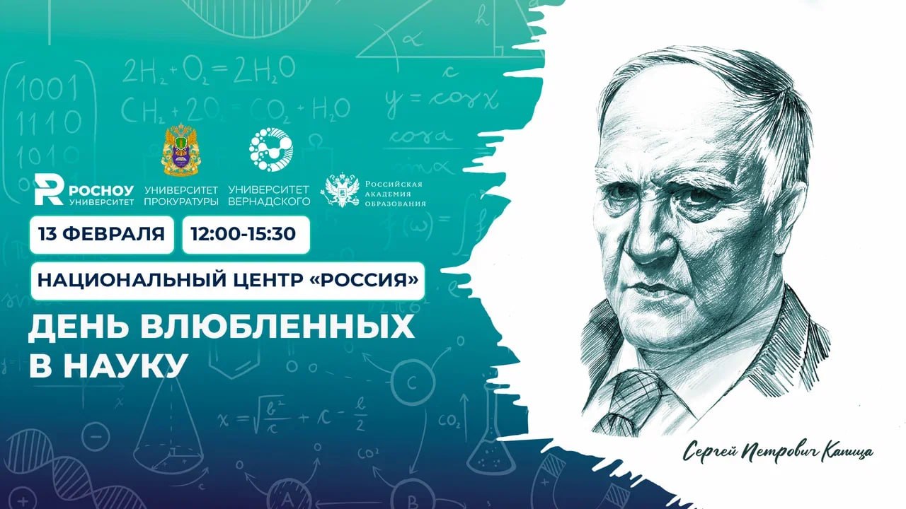 13 февраля 2026 года приглашаем всех студентов РосНОУ на юбилейный, десятый форум «День влюбленных в науку». Мероприятие пройдет в Национальном центре «Россия» и будет посвящено 98-летию со дня рождения выдающегося ученого и популяризатора науки Сергея Петровича Капицы.