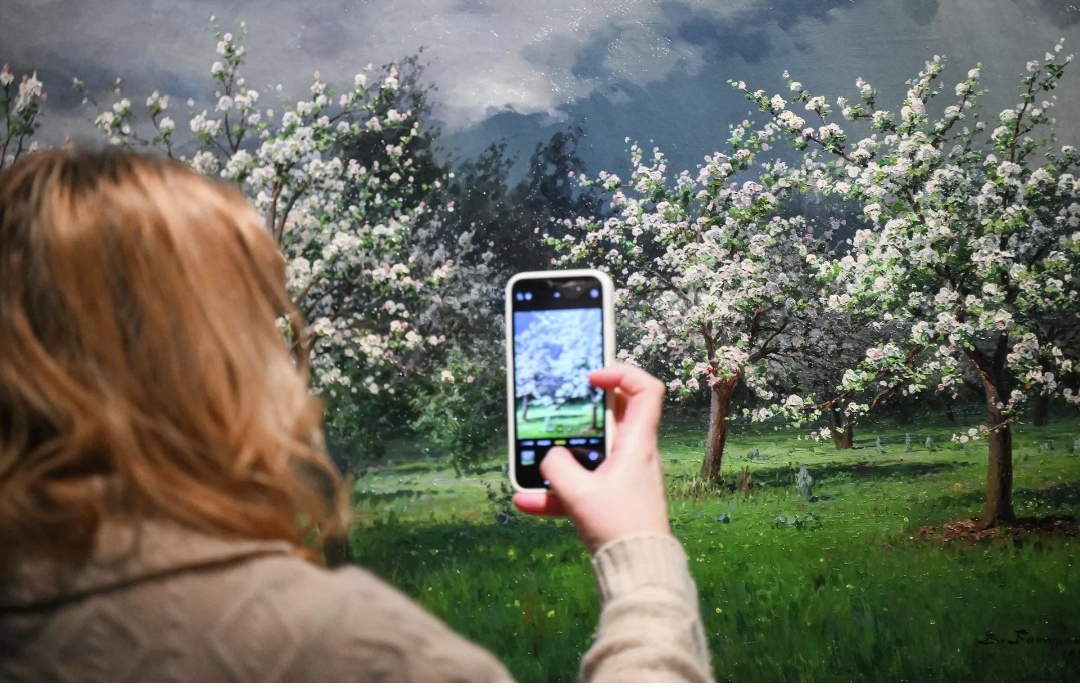Экспозиция разместилась в галерее "Каретный сарай" — прекрасном современном музейном пространстве, открытом в 2023 году. На афише — картина Ивана Куликова "За водой", передающая атмосферу всей выставки. В ней — та самая русскость, которую на уровне ощущения, впечатления шлют через свои полотна зрителям импрессионисты.