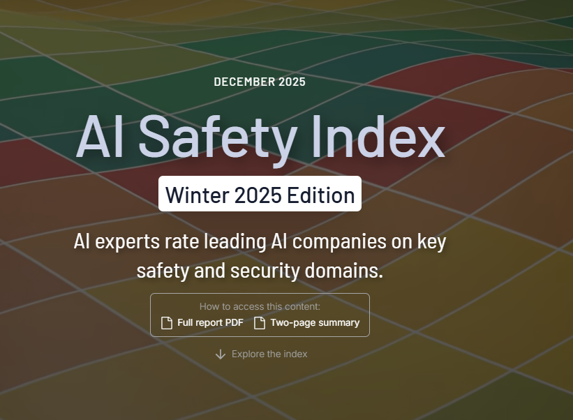 Future of Life Institute выпустил очередной Индекс безопасности ИИ, из которого следует что ни одна ведущая компания-разработчик универсальных ИИ моделей не имеет убедительных планов по контролю над сверхинтеллектуальными системами ИИ.