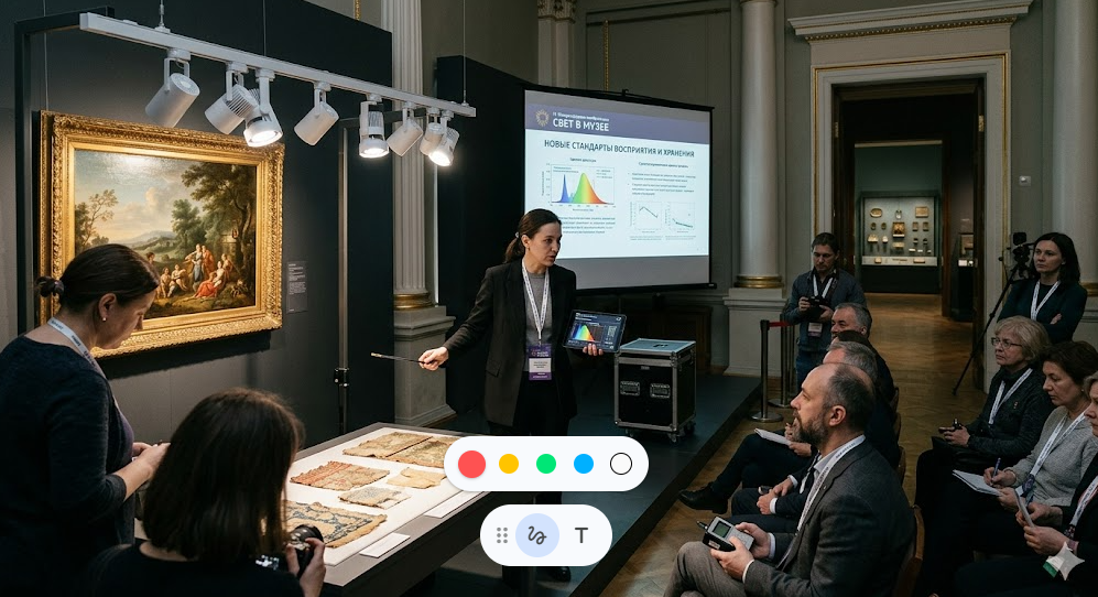 Центральное место в обсуждениях занимает тема технологий сохранения. Специалисты рассматривают современные стандарты освещения, направленные на минимизацию разрушительного воздействия ультрафиолетового излучения и тепловой нагрузки на чувствительные материалы — живопись, графику, текстиль и исторические документы. В условиях, когда многие экспонаты экспонируются десятилетиями, параметры света становятся фактором их физического выживания.