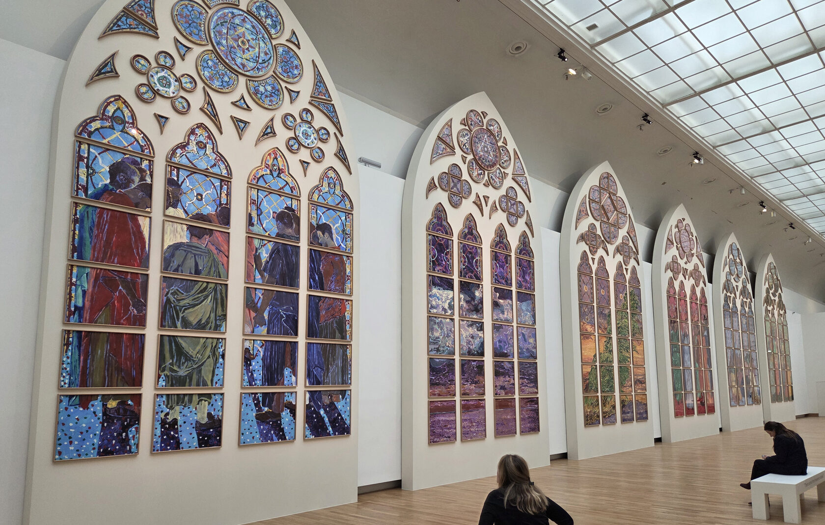 Полноразмерные макеты новых витражей для собора Парижской Богоматери (Нотр-Дам), созданные художницей Клэр Табуре, представили в выставочном комплексе Гран-Пале в центре Парижа. Выставка ее работ, получившая название D'un seul souffle ("На одном дыхании"), продлится с 10 декабря 2025 по 15 марта 2026 года.